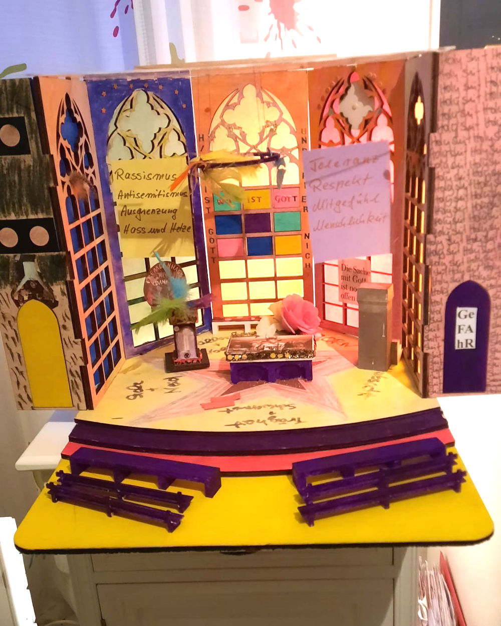 Der Initiator des Projekts „Kirchen der Angst“ Wolfgang Tzscheppan vom Kreativkreis des Förderprojektes Creative City sowie Romi Domkowsky vom Kulturbüro der Stadt Oberhausen und Boris Dresen vom Fraunhofer Institut haben im Supermarkt der Ideen mittels Lasercutter und 3D-Drucker mehrere Bühnenbildmodelle erstellen lassen, die von Einzelpersonen, Schulen und weiteren interessierten Gruppen frei gestaltet werden konnten. Ganz im Sinne von Joseph Beuys, auf den sich auch Schlingensief immer wieder bezog, konnten alle Interessierten selbst schöpferisch tätig werden und sich dabei mit dem Schaffen des wichtigen Oberhausener Künstlers auseinandersetzen.