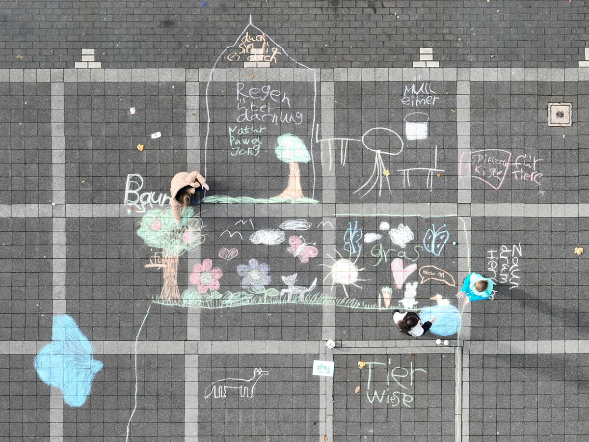 So konnten sie anschaulich zeigen, wo sie sich Spielflächen, Sitzgelegenheiten, einen Ort für Pflanzen oder Treffpunkte für unterschiedliche Bedürfnisse und Zielgruppen wünschen. Begleitet wurde der Termin von einem Drohneneinsatz, bei dem eindrucksvolle Luftaufnahmen des Geschehens entstanden – ein Highlight, auch für die beteiligten Kinder. Die gesammelten Ideen und Anregungen fließen nun in die weiteren Planungsprozesse ein. Sie sollen direkt in ein wettbewerbliches Verfahren für die Neugestaltung des Holtener Marktplatzes einbezogen werden, der im kommenden Jahr durchgeführt wird. So können die Wünsche der jüngsten Generation bei der Umgestaltung des Platzes berücksichtigt werden.