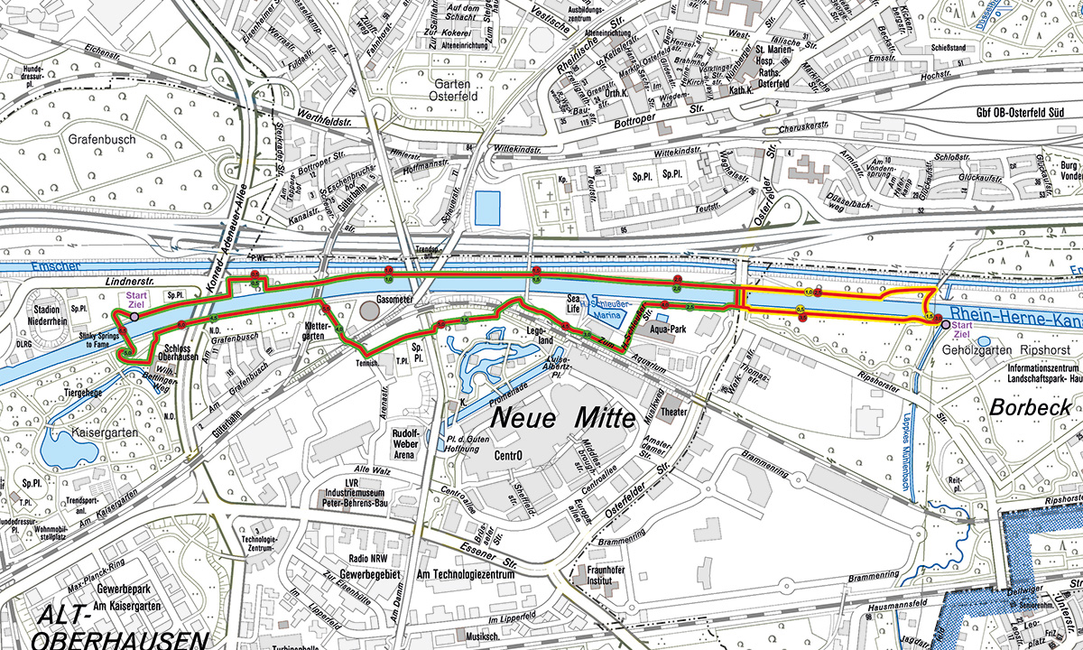 Weil ein Artenschutz-Gutachten ergeben hatte, dass einer Verlängerung nach Osten nichts entgegenstand, konnte die bereits im Herbst 2023 eröffnete Jogging- und Walkingstrecke am Rhein-Herne-Kanal um den Streckenabschnitt entlang der nördlichen und südlichen Kanalseite zwischen Osterfelder Brücke und Waghalsbrücke der Laufstrecke verlängert werden. Dieser umfasst weitere rund 1,6 Kilometer und ist mit 64 neuen und smarten LED-Leuchten ausgestattet.